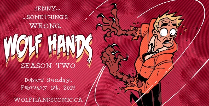 Wolf Hands: season two launches across the interwebs over at WolfHandsComic.ca, Sunday February 1, 2015. Talk about a SUPER Sunday! And if you haven't yet read Wolf Hands: season one or the 2014 Christmas Special, then check them out. Your very life may depend on it. Really. No kidding.